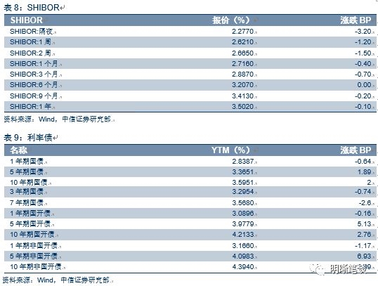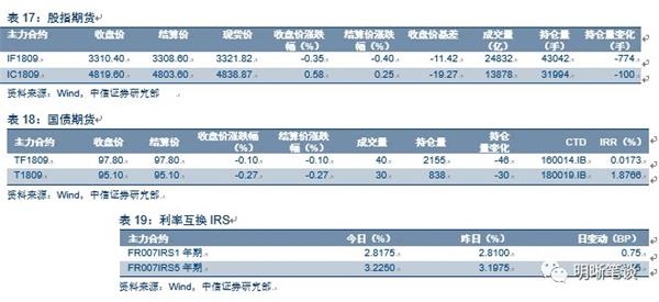 2018年9月3日,银银间质押回购加权利率全面下跌,隔夜、7天、14天、21天分别变动-0.53BP、-3.36BP、-17.25BP和1.25BP至2.25%、2.58%、2.40%和2.60%。当日国债收益大体下跌,1年期、3年期、5年期、10年期国债分别变动-0.64BP、4.05BP、1.89BP、2BP至2.84%、3.31%、3.37%、3.6%。上证综指收跌0.17%至2720.73,收跌0.12%至8455.55,收跌0.59%至1443.69。
