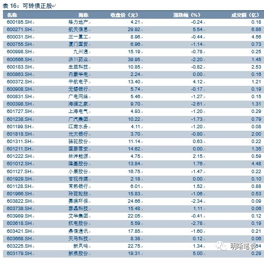 本周一沪深两市同向变动,尾盘上证综指下跌0.17%,深证成指下跌0.12%。上周中证转债指数持平,个券来看银行转债以及电子转债表现不俗,成交量则延续跌势。近期市场整体依旧处于震荡磨底的阶段,虽然偶尔数个交易日市场跃跃欲试小幅走强,但随即展开调整,场内情绪之谨慎一览无遗。总体而言,我们认为当前转债市场最不需要担忧风险是踏空风险,其背后主要来源于三方面:一是不管是内部数据还是外部潜在风险仍存在不少因素持续压制股市表现,前述也曾阐述股市的即使反弹也必将面临反复难以一蹴而就,且就短期而言仍存诸多压制因素;二是转债市场整体溢价率仍维持在较高位置,相较其正股个券弹性明显偏弱,因此即使正股迎来反弹对应转债标的也未必能充分享受;三是转债市场内部强者恒强的逻辑仍在持续,多数优质标的价格相对偏高上涨空间受限,而价格具备性价比标的不管是正股资质或是短期弹性并没有提供充足的安全垫,可以参与的标的数量未迎来明显改善。综合来看,转债市场并不缺乏时间也不缺乏潜在的空间,我们曾多次在周报中强调可以更有耐心一点,当下时点来看此状态并未出现明显变化,大可以视权益市场整体走势再做定夺。因此短期策略建议维持中性仓位,重点关注低溢价率个券特别是近期发行的新券。具体标的建议关注东财转债、三一转债、崇达转债、星源转债、景旺转债、博世转债、新凤转债、安井转债、新泉转债、艾华转债以及银行转债。