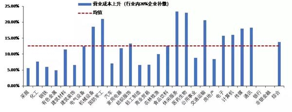 各行业营业成本提升压力指数