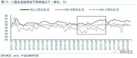 总的来说,在经济下行压力大、经济结构性专项的当口,2016年前后是企业主体面临的艰难时刻。供给侧结构性改革的确取得了一定成效,但上游涨价推动PPI上行并挤压中下游,国企和民企分化表现确实招来了“国进民退”的口实。但是经济下行过程中,没有谁可以幸免于难,国有企业在本轮改革中的良好表现是由于它所有制的天生优势吗?私营企业表现较弱也是由于受到“不公正”的待遇吗?似未必然。
