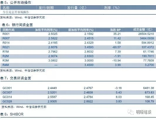 【流动性动态监测】我们对市场流动性情况进行跟踪,观测2017年开年来至今流动性的“投与收”。增量方面,我们根据逆回购、SLF、MLF等央行公开市场操作、国库现金定存等规模计算总投放量;减量方面,我们根据2018年3月对比2016年12月M0累计增加4388.8亿元,外汇占款累计下降4473.2亿元、财政存款累计增加5562.4亿元,粗略估计通过居民取现、外占下降和税收流失的流动性,并考虑公开市场操作到期情况,计算每日流动性减少总量。同时,我们对公开市场操作到期情况进行监控。