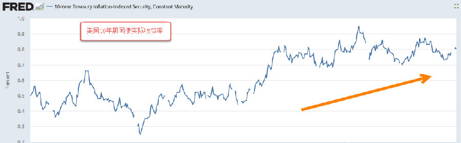 (图8:美国十年期国债实际收益率,来源:路易斯安那联储)