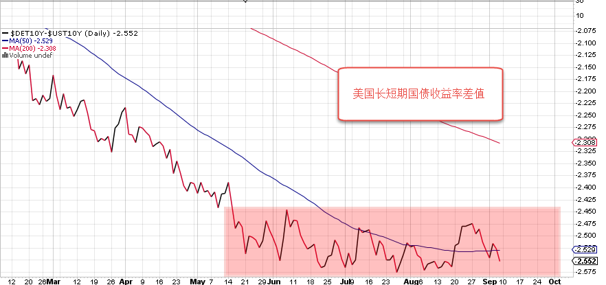 什么是长短期国债收益率的差值: