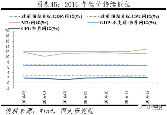 2016年一季度后经济下行,物价稳定,央行最终目标为经济增长,但需配合供给侧改革,货币政策稳健中性。一季度后经济下行压力减轻,全年GDP增速为6.7%,物价持续低位,就业整体稳定,因美元走强,人民币兑美元贬值,出口增加。表面上看没有突出矛盾,但本质上陷入死循环:内需收缩要求货币政策逆周期宽松,供给侧改革物价下行要求货币政策克制。而供给侧改革又是解决经济下行导致的内需收缩的唯一正确的途径。根据定量指标显示,央行倾向于更多的配合供给侧改革,在多方制约下实行稳健偏紧的货币政策,对银行体系流动性“削峰填谷”。