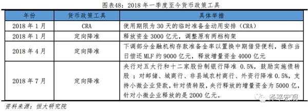 2018年经济下行压力不减,物价基本处于2%的合理区间,央行最终目标为经济增长和金融稳定,以结构性宽松的货币政策应对国外冲击、支撑国内去杠杆。美联储加息、美元走强、特朗普减税、全球贸易摩擦导致资本加速回流美国本土,各国尤其新兴市场普现汇率贬值和股市下跌。央行此阶段的最终目标有两个:经济增长和金融稳定。从三次定向降准和7月的央财之争可以看出,货币政策在边际上有所放松,但是央行不会重走“大水漫灌”的老路,而是“精准滴灌”,一是因为大面积注水只是饮鸩止渴和拖延时间,并不能解决实体经济中注入信用违约、小微融资难、股权质押风险爆发等结构型失衡困境;二是为了继续配合去杠杆和防风险进程,货币政策仍需克制;三是央行有能力精准投放流动性。经过4年对于结构性货币政策工具的创新和摸索,央行已经可以通过MLF、PSL、CRA、定向降准等灵活调节流动性。