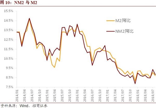 此外,根据标准M2的定义,即四部门(家庭、政府、金融机构、非金融企业)持有的可动用的现金和存款,我们构建了新的广义货币供给指标(NM2),数据显示,其与M2的走势相似,但2017年以来绝对水平更低,反映了金融去杠杆力度更大的影响。但最近三个月(6-8月)上述情况似有逆转,对应实体部门转而成为去杠杆的重点,8月NM2同比增长8.8%,低于前值9.4%。