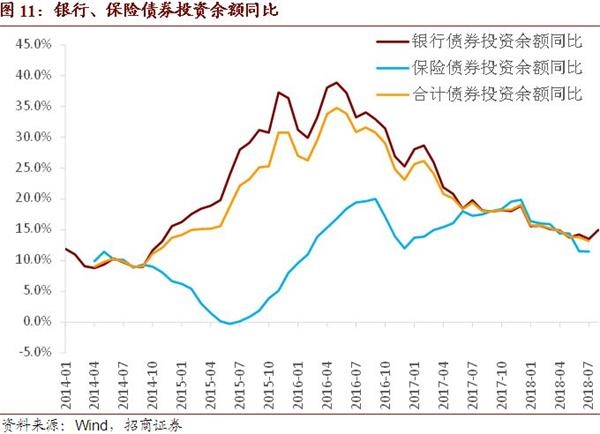 对于债券而言,在滞胀的中后期随着融资需求主动回落,长端利率债收益率会触顶回落。目前而言,我们认为债市确定性走牛需要两个条件,一是实体部门融资需求的持续回落,二是金融机构去杠杆接近尾声;目前来看,两个条件似乎都已具备。我们维持此前的判断,今年2月以来中国所处的状态是,实体部门债务余额同比增速小幅回落,而金融机构负债同比增速低位企稳。上述组合意味着,债市面临的环境是,供给小幅下降,需求基本稳定,因此收益率中枢整体处于温和下行通道。除了供需波动引起的冲击外,市场预期的波动和对政策的一些误读,可能会加大收益率下行中的波动。上述判断与我们之前的观点相比未有变化,中长期内我们仍然坚定看好利率债牛市,权益市场的底部还需等待。短期来看,7月下旬以来我们对债市转向谨慎的两点逻辑均已发生变化,因此开始重新看多长久期利率债。此外,2018年8月,银行债券投资余额同比增速录得15.0%,高于前值13.5%,显示银行加大了配置力度。