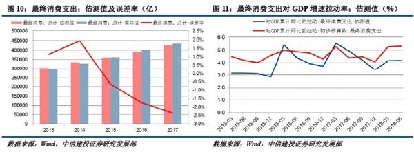 在分别估测得到居民最终消费与政府最终消费数据后,可加总得到最终消费支出规模。从结果看,估测结果误差率大致在-2.5%到2%之间,尚可接受(图10)。