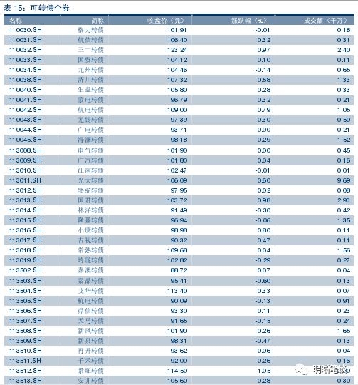 本周二沪深两市同向变动,尾盘上证综指上涨1.82%,上涨1.67%。上周中证转债指数受正股影响录得近三周以来最大跌幅,强势标的调整成为拖累指数的关键,值得注意的是近一个月以来成交量呈下降趋势,投资者交投热情随权益市场一同变弱。整体策略方面依旧维持我们近一个季度来更有耐心不可冒进的观点,核心逻辑无需赘言。本周我们主要关注两个现象。一是从个券层面的走势来看,新上市个券与存量个券近期出现一定分化趋势:对于近期新上市个券而言,一方面由于多数正股前期调整幅度较大,对应转债个券溢价率处于低位短期弹性较为充足,另一方面新券正股资质出现一定的边际改善,正股优质的基本面为转债价格提供一定支持,两方面因素叠加促使近期出现不少表现不俗的新券标的,而后续新上市个券所带来的布局机会仍值得关注;二是对于存量个券而言,强者恒强的趋势有所改变,不少前期表现强势的个券出现一定补跌趋势,多数情况下市场对此类绝对价格处于高位的个券负面因素反映较大,短期下跌幅度较大,与之相对的前期表现较为疲软调整较大的个券在当下市场反而具备一定相对性价比,后期更值得关注。简单来说,当下市场波段交易策略更为适用,短期具有相对性价比的个券或将带来超额收益。综合来看,中性仓位仍旧是当前市场较好的选择,辅以关注前期超跌的板块和个券,依旧以溢价率低标的为首选,同时价格相对较低为佳。具体标的建议关注三一转债、崇达转债、景旺转债、高能转债、新凤转债、安井转债、新泉转债、艾华转债、国祯转债、星源转债以及银行转债。