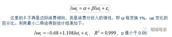 根据以上推断,我们得出了城镇消费收入弹性为1.108,即城镇人均可支配收入每变化1%,那么城镇人均消费变化1.108%。