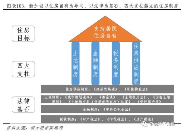 新加坡建立起以住房自有为导向、法律为基石、四大支柱鼎力的住房制度。新加坡的开国总理李光耀本是律师出身,格外重视依法治国,坚信“法律是秩序的根本保证,有好的法律,才能产生良好的秩序”。1964年提出“居者有其屋”计划并将其作为新加坡的基本国策后,新加坡政府通过立法从土地、金融、税收、供给等四个方面全方位支持居民住房自有:1967年的《土地征用法》赋予政府强制征地、低价补偿的权利,为组屋建设提供了大量廉价土地;1968年的《中央公积金修正法令》将公积金使用范围从养老拓展至购房,大大提升了居民的购买力;《财产税法》、《印花税法》等通过累进制税率支持居民自住需求并抑制投机行为。