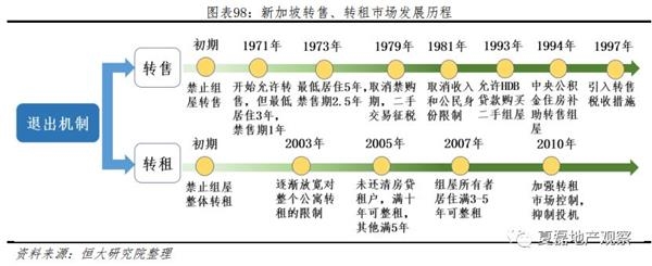 自建国以来,新加坡政府的执政理念是“不搞施舍,不建福利社会,不搞消费补贴,但是要‘通过让资产增值重新分配财富’,让人民拥有可支配资产”。故从1971年开始,新加坡政府便逐步放宽组屋转售市场限制,要求转售家庭必须居住满3年且出售后1年内禁止再次购买组屋;1973年,居住时长被延至5年,禁售期延至2.5年;1979年开始取消禁购期,但开始对组屋征收二手交易税;1981年取消转售组屋购买者收入上限和公民身份限制。