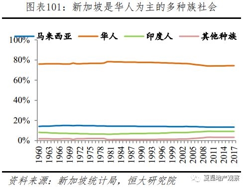 新加坡1965年才独立建国,种族多元、历史较短的移民社会特征让新政府非常重视“有恒产者有恒心”。建国之初,李光耀领导的新政府深知归属感对这个刚刚结束一个多世纪殖民统治的新国家极为重要,尤其是华人主导的新加坡,深受儒家思想影响,拥有属于自己的房产会让很多家庭产生“落叶归根”的归属感。此外,新加坡是典型的多种族、多宗教、多语言国家,华人、马来西亚、印度人各占74.3%、13.4%和9.0%,还有3.2%为其他种族;信奉佛教、伊斯兰教、印度教和基督教,讲华语、马来语、泰米尔语和英语,按种族人口比例分配的组屋计划也是政府促进种族融合的重要手段。