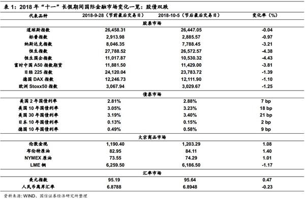 1、“十一”长假期间,国际金融市场长达5个交易日的完整交易周,最终以股债双跌而收场;