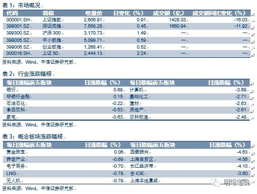 2018年10月16日,银银间质押回购加权利率涨跌互现,隔夜、7天、14天、21天和1M分别变动了-1.27bps、-2.14bps、1.84bps、2.76bps和3.35bps至2.35%、2.58%、2.54%、2.66%和3.14%。当日国债收益涨跌互现,1年期、3年期、5年期、10年期国债分别变动1.02BPS、0.04BPS、0.53BPS、-1BPS至2.89%、3.21%、3.41%、3.58%。上证综指收跌-0.85%至2,546.33,收跌-1.95%至7298.98,收跌-2.68%至1,216.69。
