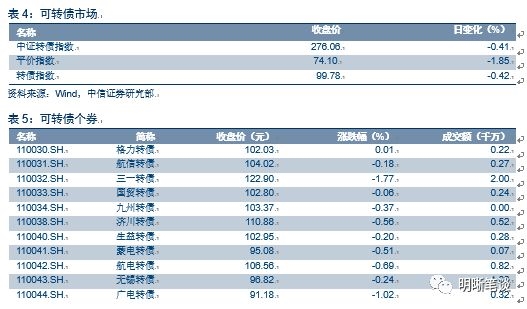 上周股市出现深度调整,各大股指均录得较大跌幅,在此情况下转债防守性质凸显,指数调整相对较小。但兼具防守性的背后实质是前期市场多数个券的深度调整后价格已经交底,且更为严峻的是上周市场即使有新券上市但日均成交额仍有所下行,短期交投情绪偏弱也对市场形成压制。前期我们也反复持续在周报中强调中性仓位与不冒进的策略。从当下市场情况来看,转债市场的尴尬情况主要来自于三方面:一是受股市回调影响转债个券的平均转股溢价率重回高位,且溢价率处于目标区间短期内具备相对弹性的标的数量大幅下降,估值上并未提供充足的布局机会;二是即使转债价格已处于绝对低位,但市场成交量维持低迷,不仅使得溢价率被动提升,也削弱了部分其他指标尚可但不具备流动性的相关个券的性价比;三是在市场风险偏好下行的背景下转债市场供给节奏明显放缓,近几周未有新券发行提供新的可选高弹性低价标的。综合而言,我们仍维持前期的判断建议短期内维持在中性仓位,权益市场情绪的修复与利好落地需要一定时间。边际积极有为布局超跌优质个券的目标与取向不变,可以看到近期市场反弹时我们所推荐关注的高弹性标的表现较好,因此落实至择券层面仍建议关注转股溢价率处于目标区间内的相关标的,其中重点关注对应正股估值明显偏低具有修复空间的标的。具体标的为三一转债、崇达转债、景旺转债、机电转债、新凤转债、安井转债、国祯转债以及银行转债。