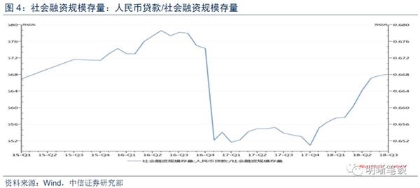 表外监管虽有所放松,但主旨不变,表外融资将持续收缩,但随着业务整改,收缩幅度将有所减小。资管新规和理财新规虽然对非标等表外监管力度有所放松,但是监管决心仍旧强势,融资渠道约束难以对社融形成强劲支撑;近期银保监会新闻发言人也曾指出“压是压降通道的表外业务,把资金从通道里挤出来,让它能够进入实体经济,而不是在金融体系内空转。”并表示表外业务是银行的正常业务,要整治在通道里空转的表外业务,而对于直接用于实体经济的表外业务不但不压缩,还要鼓励。长期来看,随着影子银行等业务整改逐渐落地,表外融资收缩幅度将边际减小,社融规模趋于稳定。