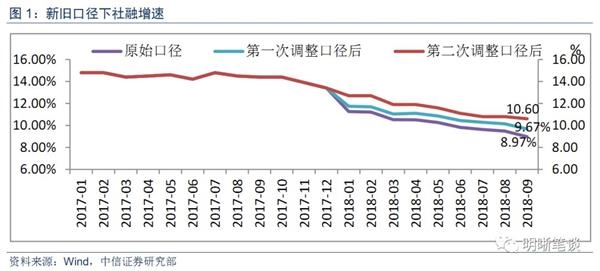 今年以来央行两次调整口径但难改社融下降走势。2018年以来,社融增速不断下滑,实体企业融资困难,央行及监管部门也采取了多项措施力求改变这一现状。央行在8月13日首次调整社融统计口径,将“存款类金童机构资产支持证券”和“贷款核销”纳入了社融统计范围,随后在10月17日,央行再次调整社融统计口径,将地方政府专项债纳入了社融统计范围。受此影响7月份社融同比增速由原口径的9.63%上升至10.29%后又进一步上升至10.08%;8月的社融由9.49%上升至10.14%后进一步上升至10.8%;10月的社融增速由8.97%上行至9.67%后进一步上升至10.6%。整体来看,社融口径调整虽然立竿见影地改变了社融增速的数值,但是变其下滑的走势并未随之改变。