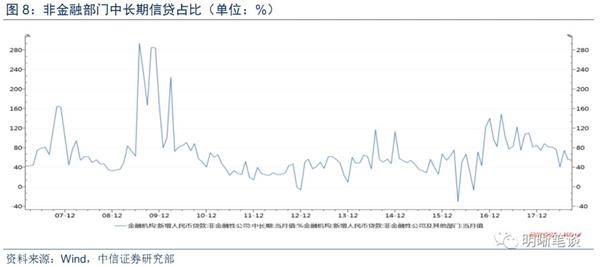 我们从不同部门的信贷变化情况出发,可以看到对于居民部门而言,其短期信贷占居民部门信贷总额的比例有所上升,而其中长期信贷占居民部门信贷总额的比例则有所下降,其可能原因,一方面是由于居民生活水平的提高促进了对消费的需求,消费贷的产生则进一步推升了这种需求并且导致短期信贷占比的上升。相反,居民部门中长期信贷占比的下降很可能是房地产受限的结果,购房需求的下降很大程度上影响了居民部门对中长期信贷的需求,而房地产贷款的数额普遍较大,因此降低了中长期信贷在信贷总额中的占比。再看企业等非金融部门,同样可以看到近年来短期信贷的占比有所提升,而长期信贷的占比下滑也较明显,表明企业等非金融部门当前更多地是需要短期资金来解决短期流动性的问题,而其长期投资意愿不足,则导致了长期信贷的占比不断下降。