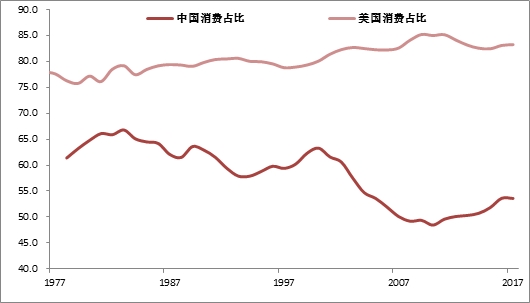 中美最终消费占GDP的比重