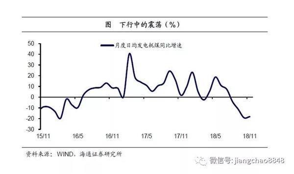 10月以来,螺纹、水泥价格持续上涨,并伴随库存持续去化,11月上旬发电耗煤降幅也明显收窄,工业生产出现短期改善迹象,但持续性存疑,应只是下行中的震荡。一则,11月以来地产销量跌幅仍大,指向内需仍偏弱。二则,今年去产能步入尾声、环保限产力度不及预期,或对钢铁等行业形成干扰。三则,电厂煤炭库存创下同期新高,预示后续发电量增速仍承压。