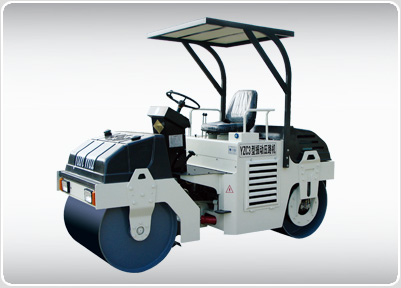 该机采用液压转向、液压振动,能更快地达到要求的压实度。采用先进的铰链式车架,整机外形美观、驾驶舒适、转向灵活、稳定性好、碾压平整。为方便施工转移,特配备如图所示的四轮平板拖车。前后压轮均有刮泥和洒水装置。压实力相当于6吨。