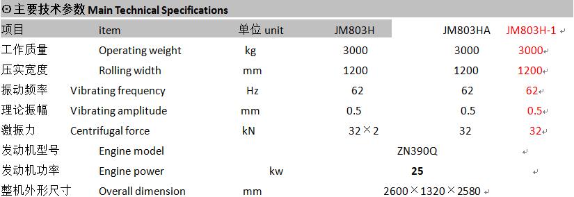 1. JM803H、JM803H-1液压双轮驱动,JM803HA液压单轮驱动,均为无级变速;